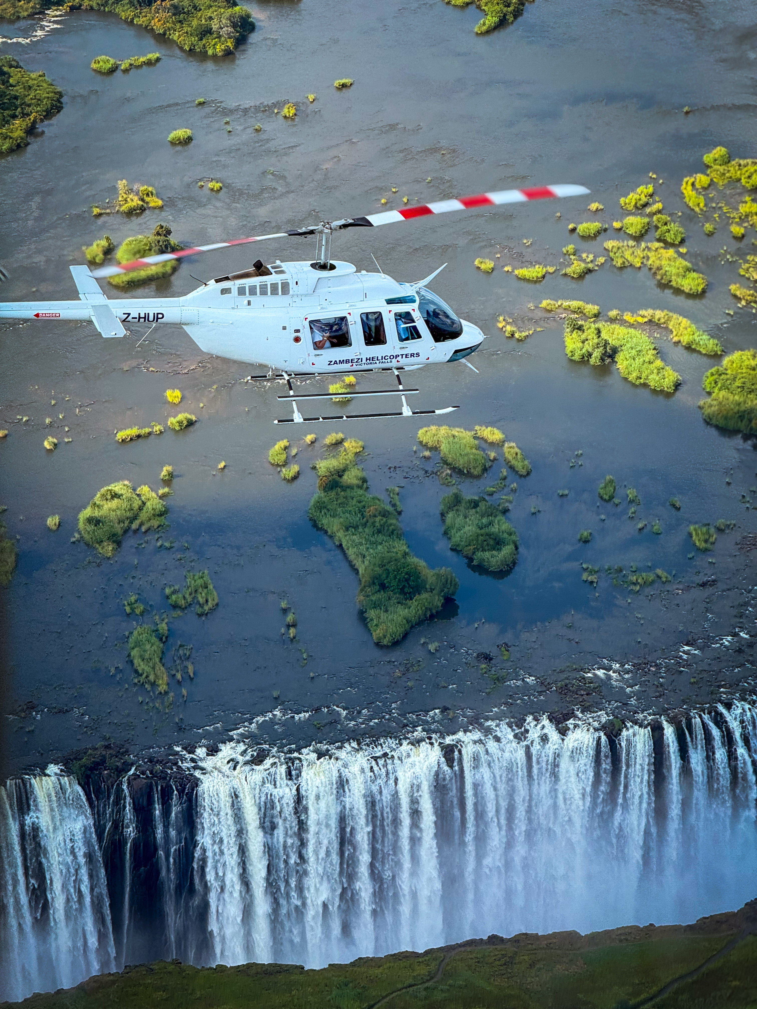 Enjoy the scenic flight over the Falls and end with a mouthwatering dinner in the Zambezi river.
